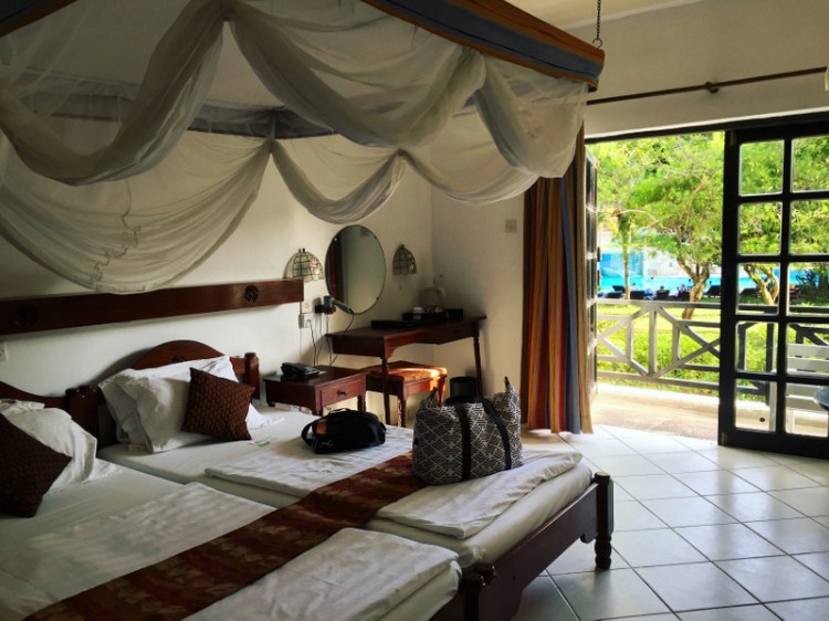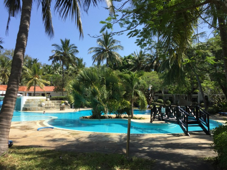 So, I headed off to Bookings.com, searched all-inclusive resorts in Diani that matched my flight dates and found a great one called Diani Sea Resort. It had a huge pool, was right on the beach and it’s price included a buffet meal three times a day plus as many beverages as you can handle – everything from water, coffee, tea and soda to a myriad of cocktails and straight up hard tack like whiskey! As an added bonus, the resort also has a snack menu that you can order from between 12 and 4pm (burgers, pizza, sandwiches and fish and chips). The best bit? If you shared a room, it was R5 600 per person!