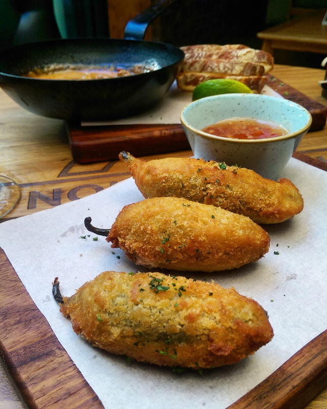 We also enjoyed the Abbey Road poppers (R55) – crumbed and fried jalapenos stuffed with cream cheese, cheddar, chorizo (!), mozzarella.
