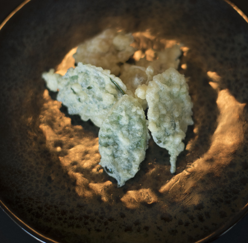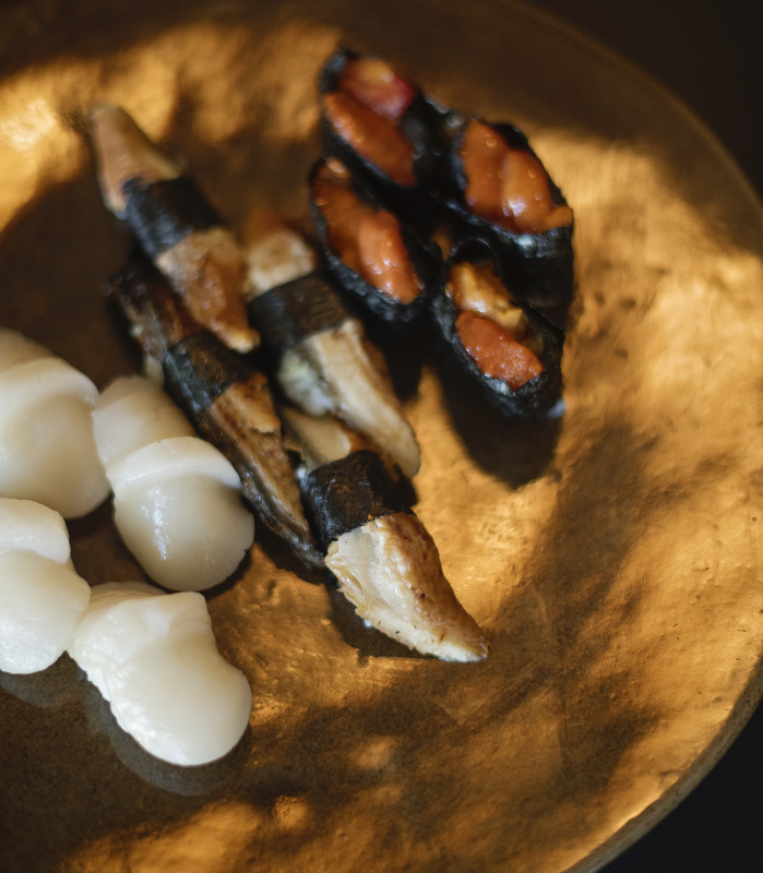 Naturally, I was delighted by dish number one – ‘Shallow Seas’ – as it consisted of a double serving of Scott’s incredibly lustable scallops (yes!) as well as eel and sea urchin nigiri. As always, the buttery scallops melted in your mouth and the sushi was delish. Back in the day I used to be kind of freaked out by eel but after I discovered that it tastes a bit like a poached kipper I became a fan. As for the sea urchin, I’d never tried that before and was a little hesitant. I had no clue what to expect but it had a lovely flavor due to whatever it had been marinated in. In a way, it reminded me of a tuna tartar in a sweet-spicy marinade. A word about their fabulously fresh wasabi – you only need a dash as it’s Potent with a capital P!