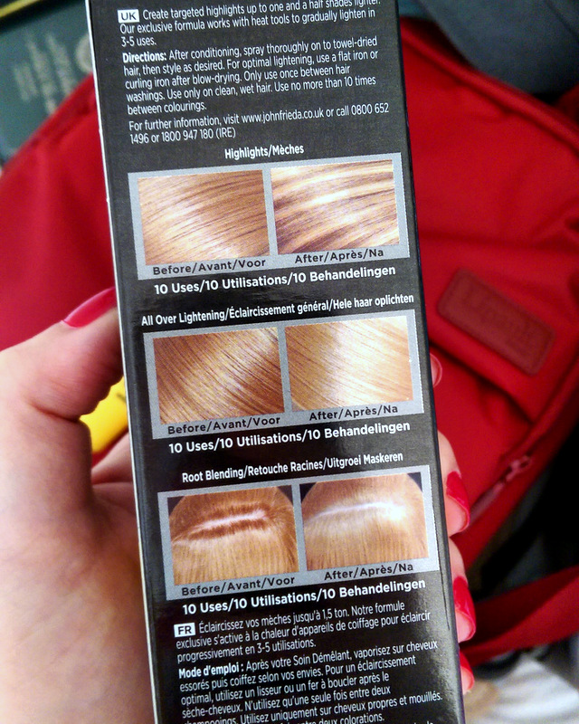 Just bare in mind that it lifts your hair by a couple of shades so if you’ve got dark hair, the next shade or two up might be strawberry blonde or brass. You could correct this with a violet tinted shampoo like John Frieda’s Sheer Blonde Colour Renew but, for this reason, the lightening spray is something I’d only recommend to peeps who are already mostly blonde and looking to blend their roots. If you’ve got naturally brown or black hair but have become a platinum goddess and now want to blitz regrowth as dark as my soul this is not going to be your friend.