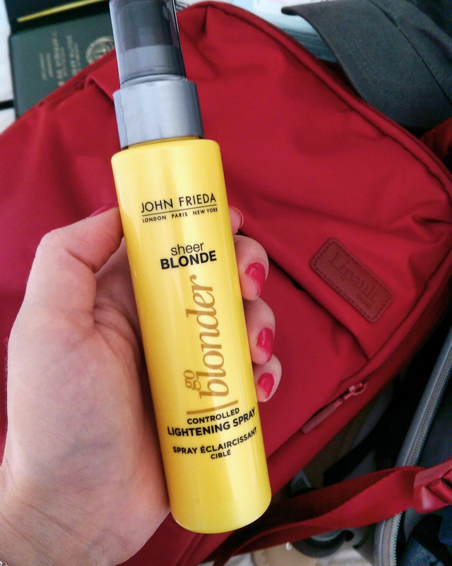 The lightening spray works best if you blast your hair with a hairdryer after spritzing but I’m not packing one so here’s hoping I find one in my hotel.